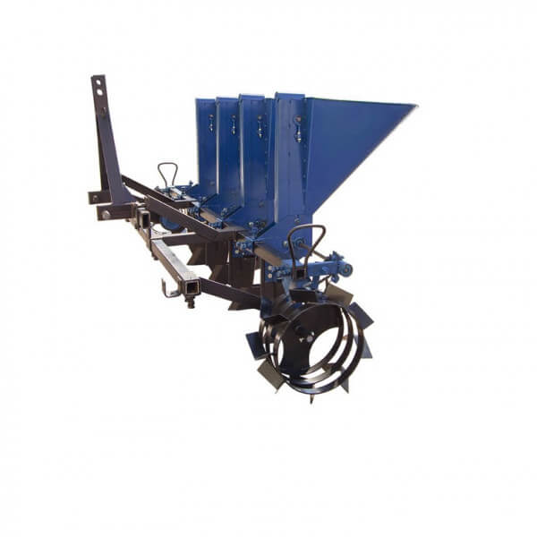 Чеснокосажалка 4-х рядная на минитрактор (ЧС25) ложки Ø34, Ø24,5 — эффективное навесное орудие, предназначенное для ускоренного выполнения посевных работ на полях большой площади. Для агрегатирования подходят минитрактора большой мощности — минимум от 24 л.с. Сцепка осуществляется за счет 3-позиционного узла крепления с гидроподъемом орудия. Грунт рекомендуется предварительно подготовить к посевными работам, чтобы обеспечить легкую проходимость тяговой техники с навесным оборудованием и равномерный высев посадочного материала.