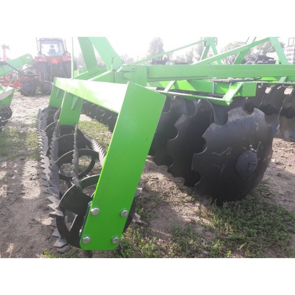 - Диски установлены под наклоном по направлению движения трактора и находятся на индивидуальной стойке. Благодаря этому есть возможность регулировки ширины захвата.