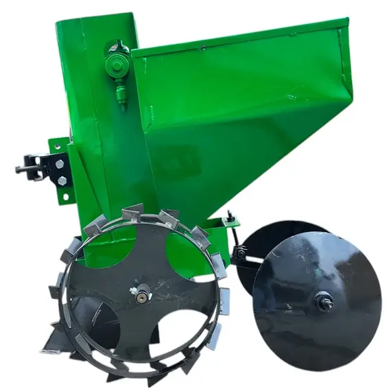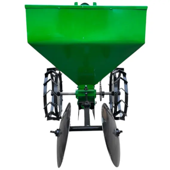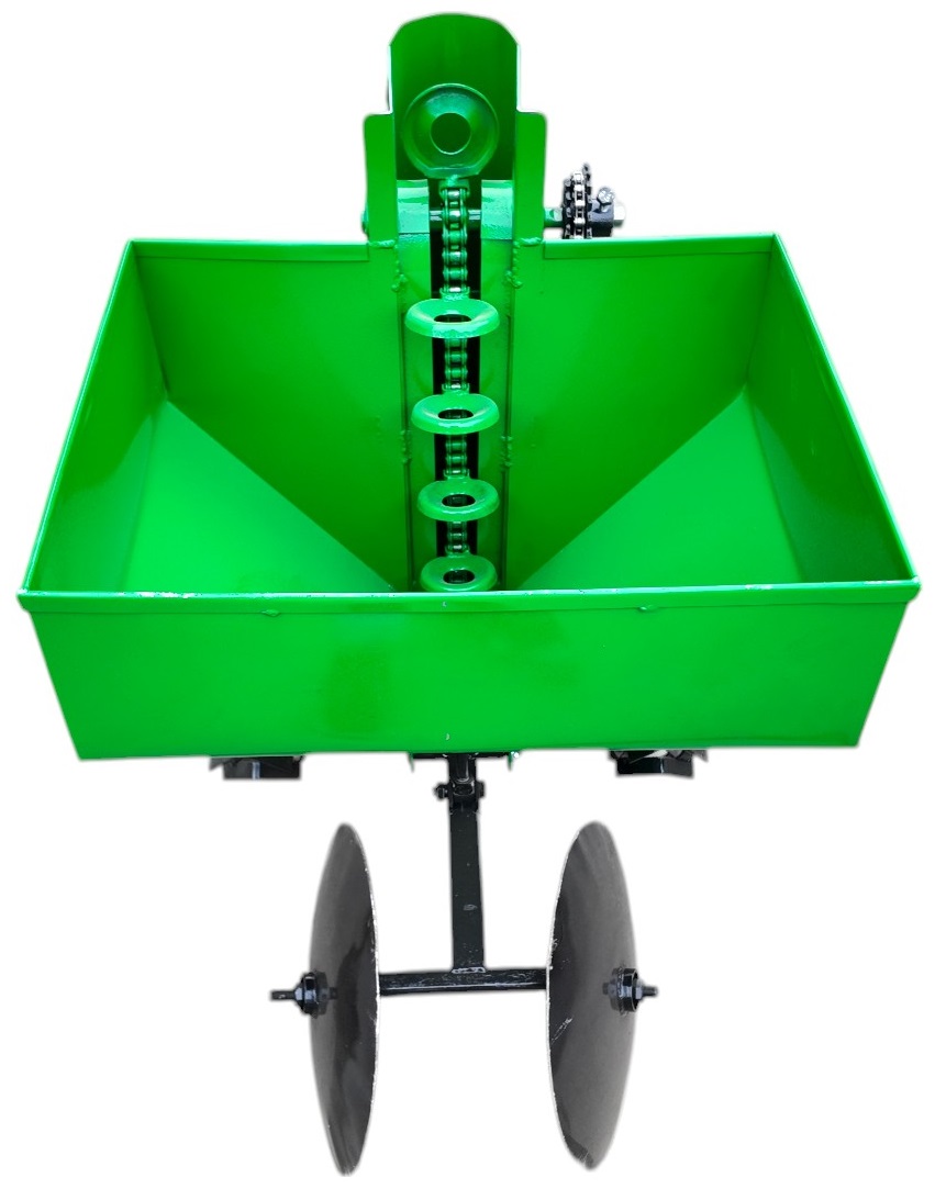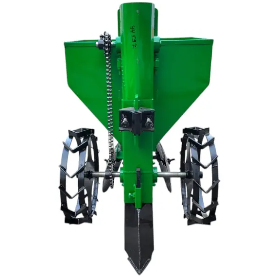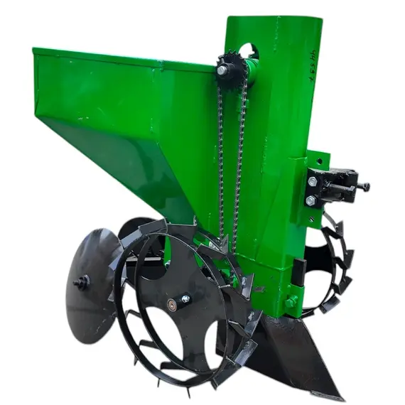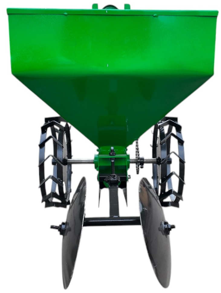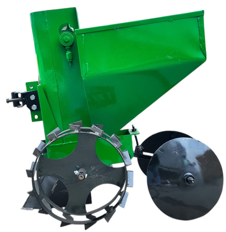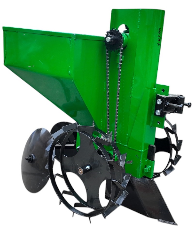 Картофелесажалка однорядная КСН-1М (45л) предназначена для посадки картофеля различных сортов мотоблоком. Высокая точность размещения семенного картофеля по глубине высадки и возможность регулирования ширины междурядий обеспечивает высокую урожайность. Картофелесажатель имеет обьем бункера 45л, цепной элеваторный механизм, дисковые окучиватели.