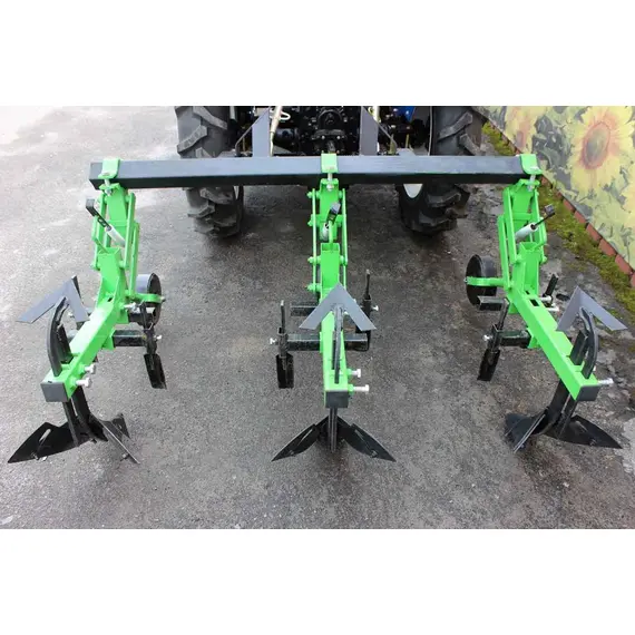 Глубина обработки почвы регулируется благодаря крепежным соединениям, расположенным на каждой из секций и удерживающим съемные элементы – окучники, рабочие лапы, рыхлители. При этом заглубление каждого из них можно отрегулировать отдельно. Равномерное заглубление всего агрегата обеспечивается опорными колесами, а также демпфирующими пружинами, расположенными на каждой из секций.