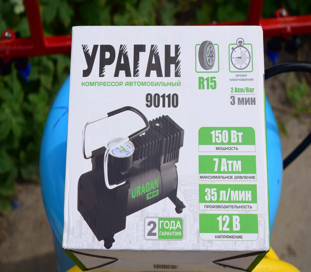 - компрессор автомобильный 12 В с давлением 2,5 атм;