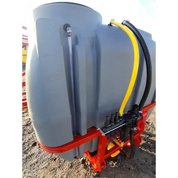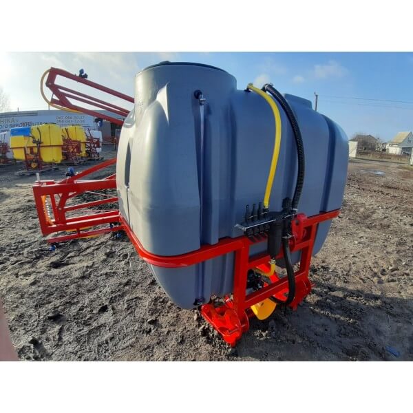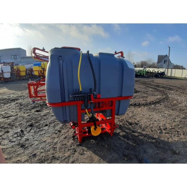 Опрыскиватель не является самостоятельным оборудованием, он соединяется сцепкой с трактором, который осуществляет его перемещение по полю. Состоит со стальной гнутой рамы, на которую помещены рабочие элементы: мембранно-поршневой насос Agroplast, заправочное устройство, распределительная система (брандспойты, вентиляторы и шланги), редукционные клапаны и резервуар для химикатов на 1000 литров из морозостойкого, высокопрочного, устойчивого к ультрафиолету полиэтиленового материала.