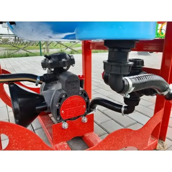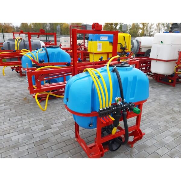 Опрыскиватель не является самостоятельным оборудованием, он соединяется сцепкой с трактором, который осуществляет его перемещение по полю. Состоит со стальной гнутой рамы, на которую помещены рабочие элементы: мембранно-поршневой насос Tolveri, заправочное устройство, распределительная система (брандспойты, вентиляторы и шланги), редукционные клапаны и резервуар для химикатов на 200 литров из морозостойкого, высокопрочного, устойчивого к ультрафиолету полиэтиленового материала.