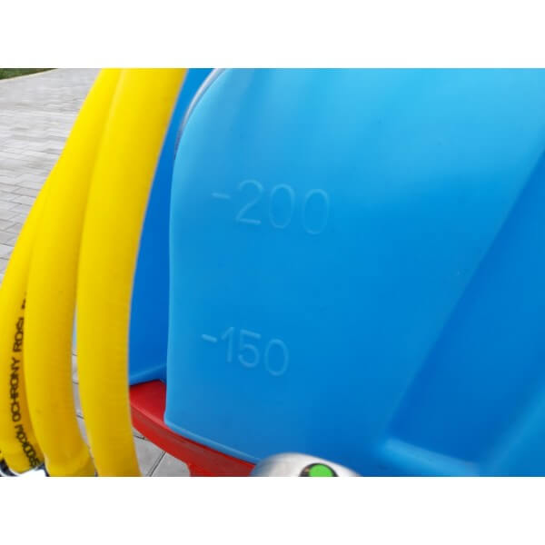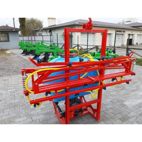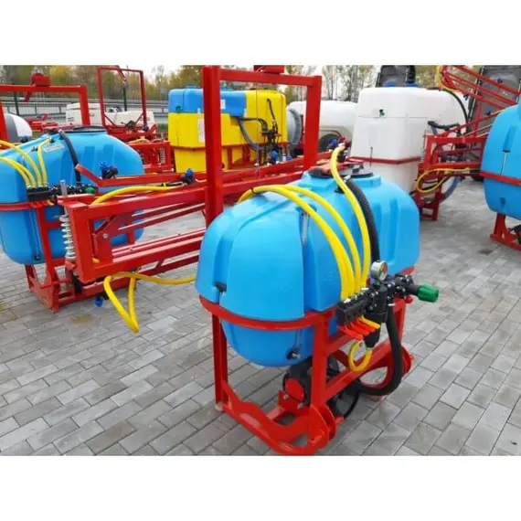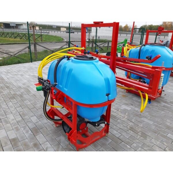 Опрыскиватель не является самостоятельным оборудованием, он соединяется сцепкой с трактором, который осуществляет его перемещение по полю. Состоит со стальной гнутой рамы, на которую помещены рабочие элементы: мембранно-поршневой насос Tolveri, заправочное устройство, распределительная система (брандспойты, вентиляторы и шланги), редукционные клапаны и резервуар для химикатов на 200 литров из морозостойкого, высокопрочного, устойчивого к ультрафиолету полиэтиленового материала.