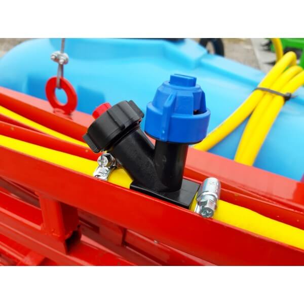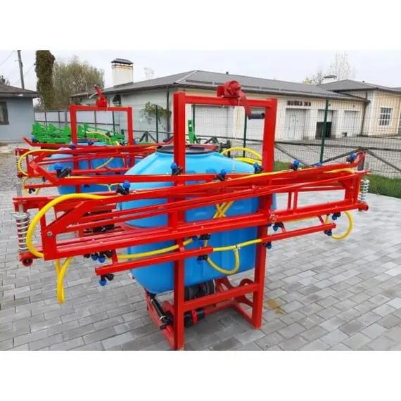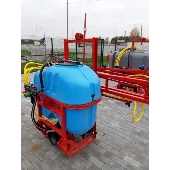Опрыскиватель не является самостоятельным оборудованием, он соединяется сцепкой с трактором, который осуществляет его перемещение по полю. Состоит со стальной гнутой рамы, на которую помещены рабочие элементы: мембранно-поршневой насос Tolveri, заправочное устройство, распределительная система (брандспойты, вентиляторы и шланги), редукционные клапаны и резервуар для химикатов на 300 литров из морозостойкого, высокопрочного, устойчивого к ультрафиолету полиэтиленового материала.
