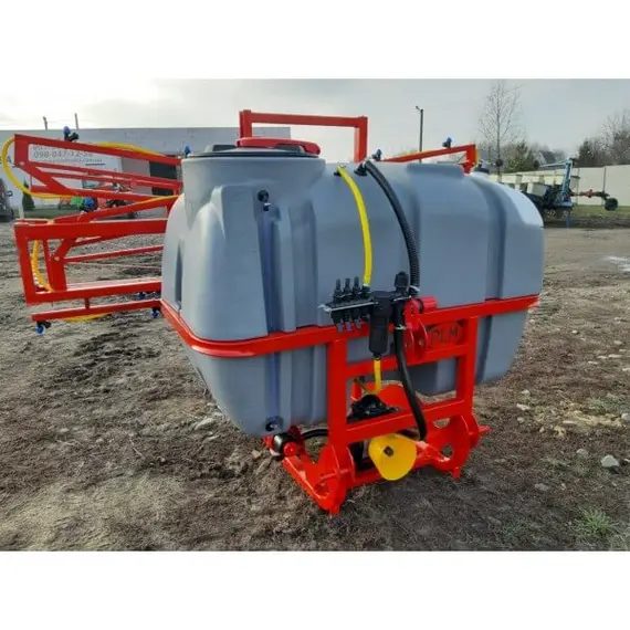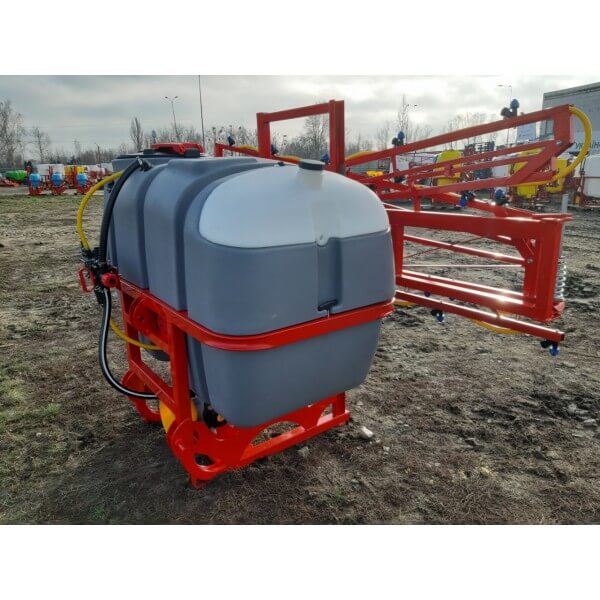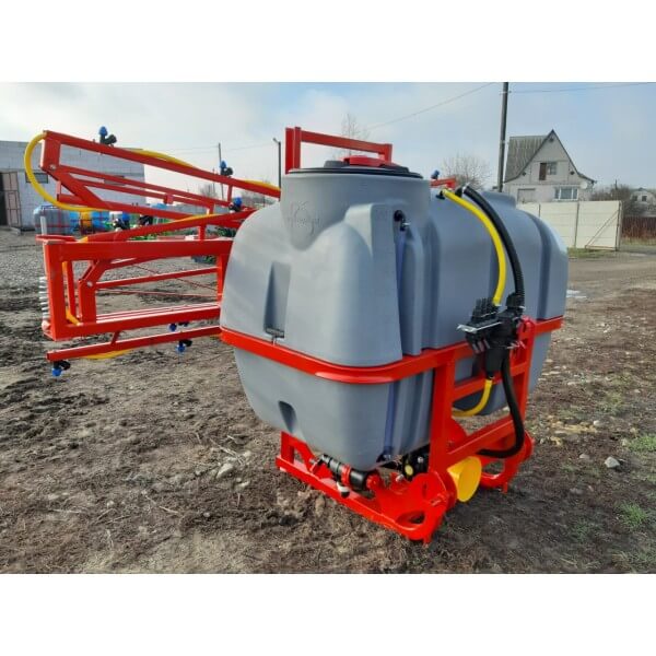 Опрыскиватель не является самостоятельным оборудованием, он соединяется сцепкой с трактором, который осуществляет его перемещение по полю. Состоит со стальной гнутой рамы, на которую помещены рабочие элементы: мембранно-поршневой насос Tolveri, заправочное устройство, распределительная система (брандспойты, вентиляторы и шланги), редукционные клапаны и резервуар для химикатов на 800 литров из морозостойкого, высокопрочного, устойчивого к ультрафиолету полиэтиленового материала.