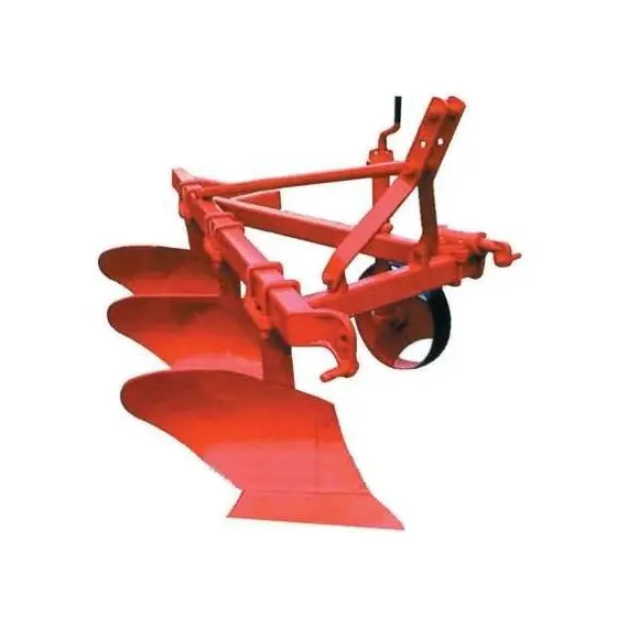 Плуг навесной 1L-325К (трехкорпусный) предназначен для основной обработки почвы, а именно вспашки трактором. Этот плуг состоит из рамы, на которой закреплены опорное колесо, предназначенное для регулировки глубины обработки и поддержки конструкции, и 3 корпуса. При применении постпозиционной системой управления навеской колесо нужно снять. Плуг агрегатируется к трактору посредством трехточечного механизма навески. Задний корпус отличается более широкой и длинной боковой стороной.