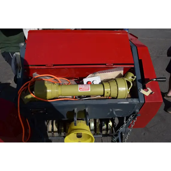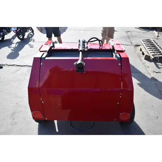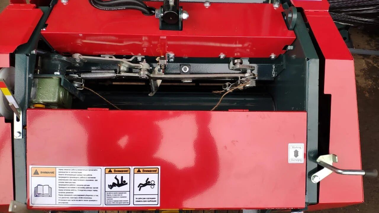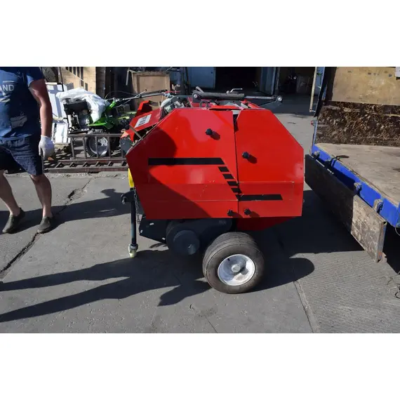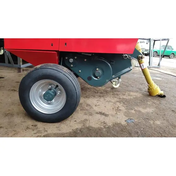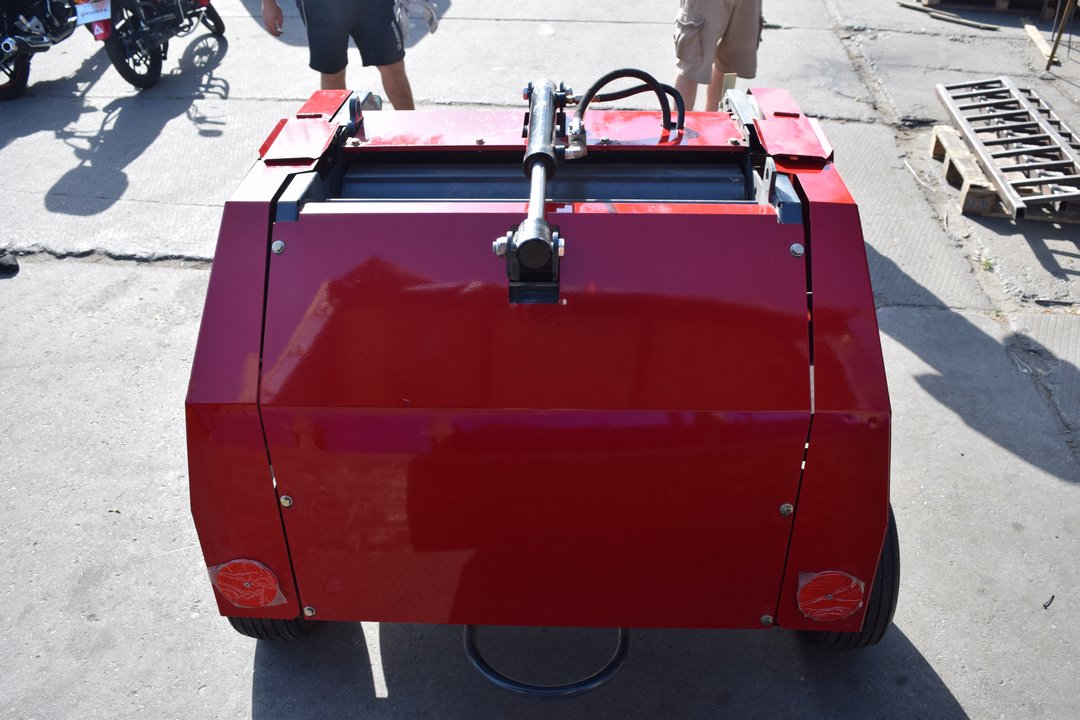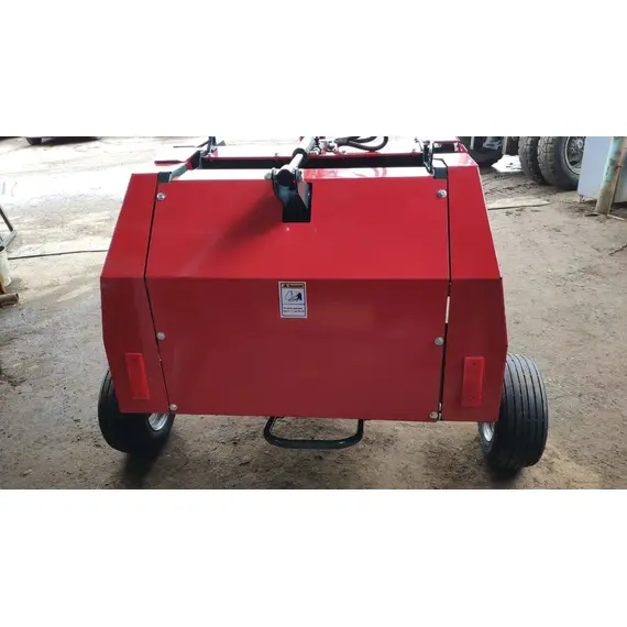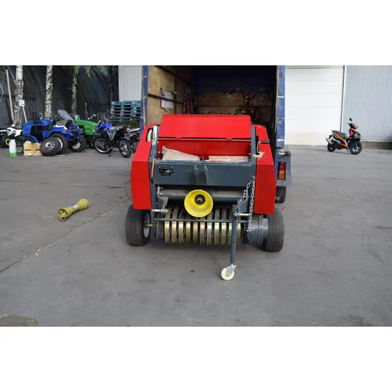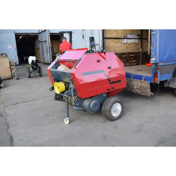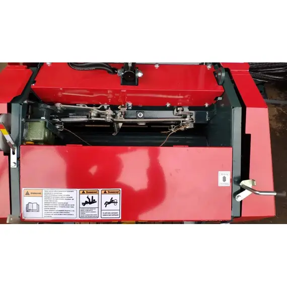 Агрегат навешивается на заднюю навесную систему трактора, во время работы опирается на собственные колеса для обеспечения равномерного попадания сена в бункер. При заполнении бункера подается звуковой сигнал трактористу про необходимость включения вязального аппарата и дальнейшей разгрузки. Привод пресс-подборщика совершается от ВОМ, а крышка бункера при разгрузке поднимается при помощи гидроцилиндра.