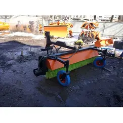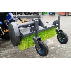 Конструкция щетки подметальной представляет собой вал, состоящий с множества ворсинок, который вращаются благодаря подключению к Валу Отбора Мощности (ВОМ). За счет вращения щетки весь мусор отбрасывается в необходимую сторону. Подключается такая конструкция зачастую благодаря 3х точечному креплению, что позволяет поднимать инструмент когда выполнения работ не нужно. Сила прижима регулируется благодаря специальным колесам упора, которые удерживают коммунальную щетку на необходимой высоте.