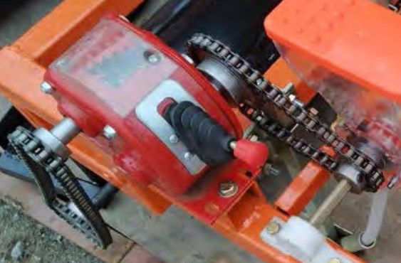 Высевающий устройство бункера оснащен двумя подшипниками качения закрытого типа, что положительно влияет на долговечность устройства и точность высева семян. Кроме того, конструкция высевающего аппарата выполнена таким образом, что специальная щеточка сметает избыточное семян, благодаря чему в сошник попадает только дозированное количество семян, а расстояние между растениями является равномерной. Благодаря чему уменьшается расходы семян и не происходит пробелов в строке при посадке.